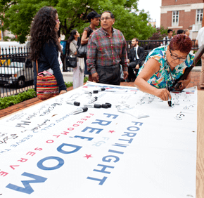 “I believe in what we’re doing. This is very important,” she said. “I appreciate the fact that we came together, and that we stand together for religious freedom, which our country was founded on.”
