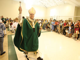 During a morning Mass earlier in the church, the archbishop said the completion of the parish center will help the 980-family parish live out Gospel values.