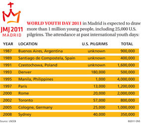 The Archdiocese of Baltimore’s contingent to World Youth Day, which is led by Pope Benedict XVI, will consist of 26. Mount de Sales Academy in Catonsville and St. Mary’s High School in Annapolis are taking sizable groups, and Archbishop Edwin F. O’Brien is also expected to attend.
