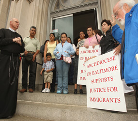 Outside the church, chants of “Si Se Puede” rang out from members of the recently-formed Archdiocese of Baltimore Immigration Coalition. The phrase is Spanish for “Yes, it can be done,” inspired by President Obama’s campaign slogan, “Yes we can.”