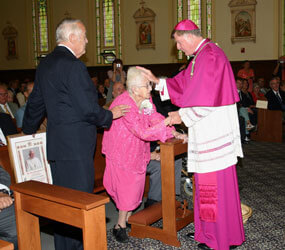 During the June 5 Mass, when Bishop McManus gave her an apostolic blessing from Pope Benedict XVI, Mrs. Gauthier said she wasn’t expecting that. The congregation sang “Happy Birthday,” and she waved to the crowd.