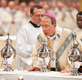 The archbishop addressed the priests in his homily at the chrism Mass at the Cathedral of Mary Our Queen in Homeland. The annual liturgy includes the blessing of holy oils and consecration of sacred chrism for use in sacraments during the following year, as well as the renewal of promises for priests.