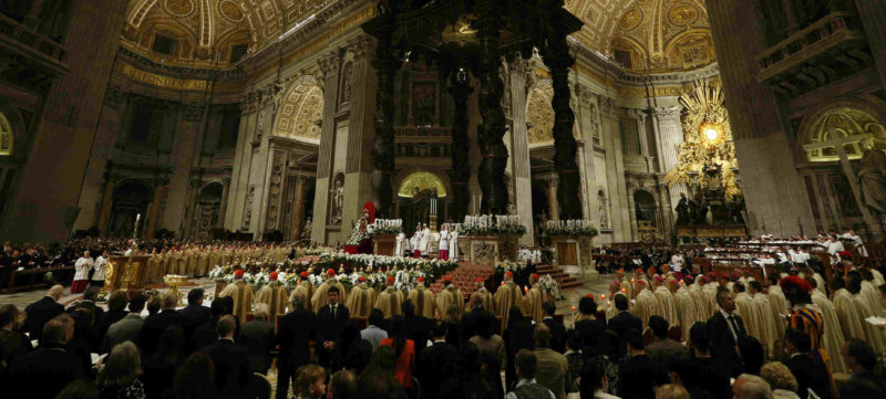 Pope Francis began the vigil in the atrium of St. Peter’s Basilica, blessing a fire and lighting the Easter candle. A deacon carried the candle into the semi-darkened basilica, lit the pope’s candle and began sharing the light with the thousands of people in the congregation. Little by little light filled the world’s largest Catholic church.