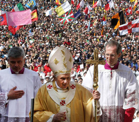 At the end of the Mass, Pope Benedict spent time with the many sick and disabled people near the altar. He offered them a special greeting, saying that by identifying with Christ, they can give meaning to their own suffering.