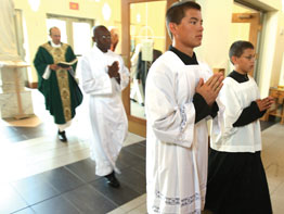 Spotting an altar server who was slightly distracted before the start of a recent Sunday morning Mass, Gus Moreno gently tapped her on the shoulder and gestured toward four fellow servers who had formed a circle in a small vesting room at St. John in Westminster.Read More