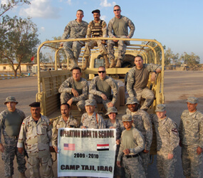 Father Tyson Wood, a U.S. Army major, is one of many Americans involved in “Operation Back to School” at Camp Taji, Iraq – a humanitarian effort to collect enough notebooks, pencils, paper, rulers and other supplies to make 10,000 school kits for Iraqi children.