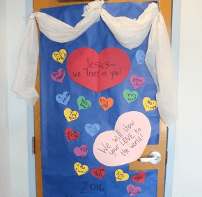 The school annually marks Catholic Schools Week by decorating the doors of its classrooms, which this winter include the thoughts of students on the theme of mercy.