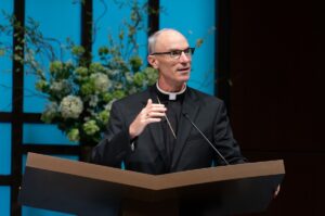 “My role as Auxiliary Bishop has two large pillars,” he said. “On one hand, there’s my role as Vicar General and Moderator of the Curia, where I oversee the day-to-day operations of the Archdiocese. I serve as the general manager of the Catholic Center, overseeing the executive directors who manage the various departments. We have six major departments, and then there are a couple of other offices that I’m responsible for, such as child and youth protection. I meet with the executive directors regularly, I meet with the Archbishop, and I’m involved in a lot of meetings—probably between 15 and 18 committees, councils, or boards.”