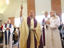 Bishop W. Francis Malooly, western vicar, blessed and dedicated the Chaminade Parish Center following a March 18 liturgy. The center is named after Blessed William Joseph Chaminade, the founder of the Marianist order of priests and brothers who have staffed the parish since 1981.