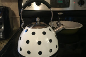 When Daniel and I went shopping the other day, we were more focused on birthday gifts for his Aunt Shai and his cousin Elise. But when we were walking through a store and saw a polka dot teakettle, I knew I had to buy it for myself.