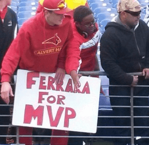 It was Ferrara’s first Turkey Bowl. He kicked for the junior varsity last year, when he said his biggest moment was giving Calvert Hall some breathing room in a four-point win over Mount St. Joseph in the MIAA A Conference championship game.