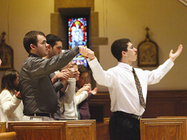 The full student choir performs a variety of styles of music – from contemporary to Spanish-influenced compositions – at the 6 p.m. Mass, Mr. Miller said.