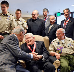 CATONSVILLE – Joining the ranks of previous honorees including Charles Lindbergh, John Glenn, Hank Aaron, Bob Hope and 14 U.S. presidents, Cardinal William H. Keeler was presented with the Silver Buffalo Award – the highest commendation given by the Boy Scouts of America.