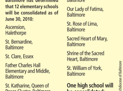 Archbishop Edwin F. O’Brien has decided to consolidate 13 schools – 12 elementary and one secondary – after a year-long scrutiny of the Archdiocese of Baltimore’s educational system.Read More