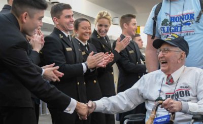 Well-wishers, volunteers and active military personnel cheered, waved flags and held thank-you signs. Many in a crowd that numbered hundreds deep reached out to shake the hands of beaming military veterans as they came off the airplane from Ohio.Read More