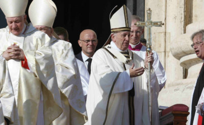 The Vatican hung banners of the Catholic Church's newly canonized saints four days before the Mass that would officially recognize that they are in heaven with God.Read More