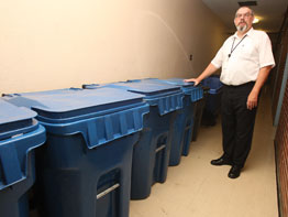 With the paper efforts, the building has cut trash dumpster collections from four to three times a week in just two months thanks to recycling efforts.