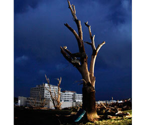 Early estimates put 10 percent to 20 percent of the 50,000-population city’s buildings as being damaged. Utility poles were uprooted by the tornado, making telephone communication difficult at best. Electricity and natural gas service was out in several sections of the city, with downed lines and dislodged pipes hampering search efforts. News accounts and Internet-posted photos and video were rife with flattened structures and twisted slabs of metal that had once been cars.