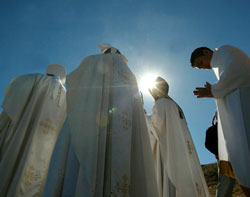 A similar group from Nuevo Laredo, Mexico, began walking from the other direction. The two groups met for a balloon release, converging on the Convent Street bridge that joins the two countries. A Mass celebrated by the Texas and Mexican bishops followed on the banks of the Mexican side of the Rio Grande.