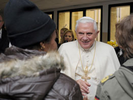Pope Benedict XVI’s 45-minute visit Jan. 4 to the Vatican’s shelter for the poor and homeless was distinctly simple and low-key. It began with a song about Jesus, sung by the Missionaries of Charity sisters who run the institution.