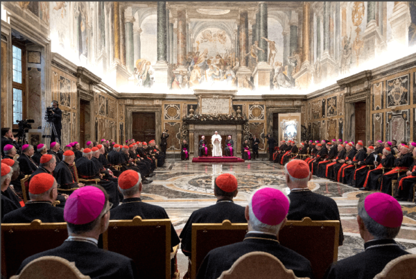 Christmas, he told the officials, “gives us the certainty that the grave evils perpetrated by some will never be able to cloud all the good that the church freely accomplishes in the world.”