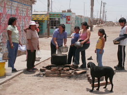Through a network of parish volunteers, Caritas oversees 30 of the 350 “comedores,” or common soup pots, in Pisco that provide a hot midday meal using supplies from relief organizations. Other aid agencies and the government manage the rest of the comedores, said Caritas employee Angel Allccarima Ochante.