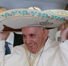Alazraki had given similar hats to St. John Paul II and Pope Benedict XVI when she traveled with them to her homeland. The pope put the sombrero on briefly and smiled for the cameras.