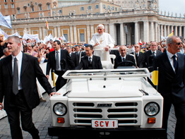 VATICAN CITY – Pope Benedict XVI’s security guards are known for composure under pressure, and they showed it when a deranged German tried to jump onto the pope’s jeep at a general audience.