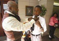 More than 80 percent of Cristo Rey’s students qualify for the federal free or reduced lunch program, according to Father Swope. About 80 percent are black, 10 percent are white and 10 percent are Hispanic, he said. While virtually all are Christian, only about 35 percent are Catholic.