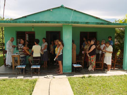 Isabel Maria Marishal, 65, offers her home as a mission house in this particular neighborhood. Transportation is difficult in the island country, and bus service is hard to come by in the farmlands. Mrs. Marishal, who has heart problems and diabetes, stopped going to Mass for a time; the chapel about a mile away was too far for her to walk. So she welcomed the opportunity to gather neighbors in her home for liturgy.