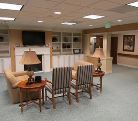 “We don’t restrict times that a visitor can come,” Willis explains. “Residents can have visitors anytime. The family member can sleep on a cot or the couch in their room. We also have guest rooms they can use.”