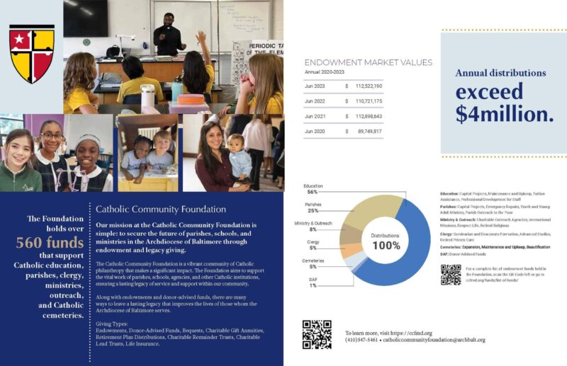 The Advancement Department also provides professional and technical fundraising support to parishes, schools, institutions and organizations of the Archdiocese of Baltimore.