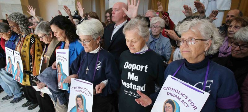 Some of them sang and prayed, and many of them — such as Dominican Sister Elise Garcia and Mercy Sister JoAnn Persch — said they had no option but to participate in the act of civil disobedience to speak out against the failure of Congress and the Trump administration to help the young adults.