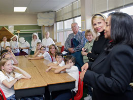 The teacher often writes short plays about topics her students are studying, including the 1904 World’s Fair, Charles Lindbergh and Benjamin Franklin. The students study the plays and perform them.