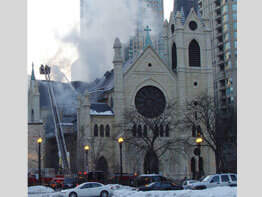 Fire officials reported there was significant water damage inside. Firefighters had punched holes in the roof to battle the blaze. There apparently was extensive damage to the cathedral’s roof and attic. Archdiocesan chancellor Jimmy Lago told the Chicago Sun-Times that the cathedral would likely be closed for months for repairs.