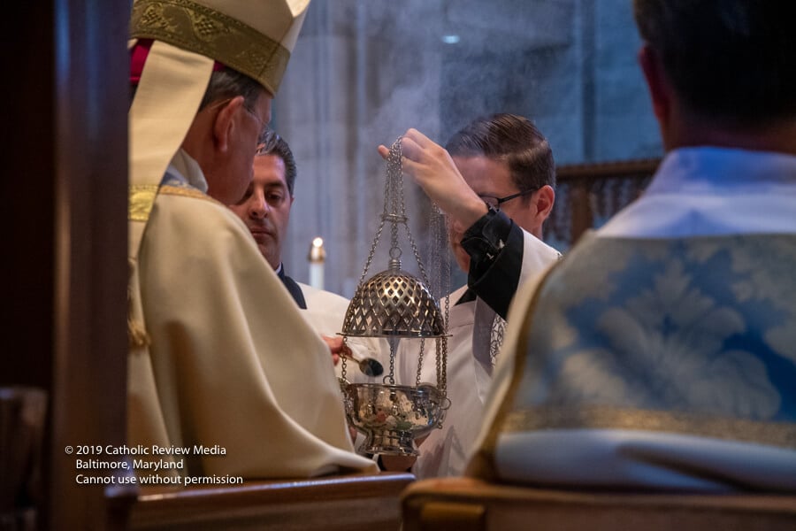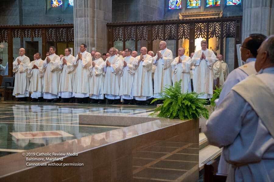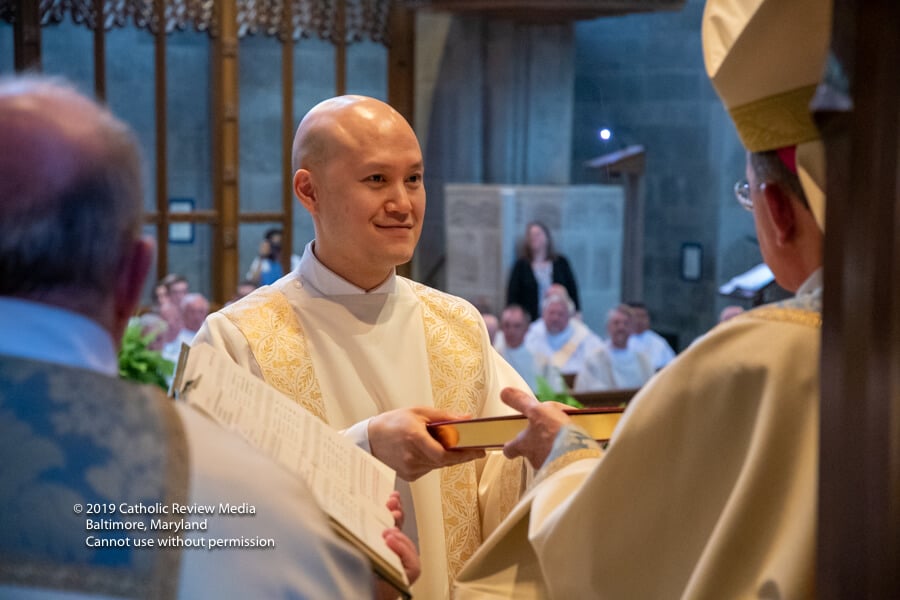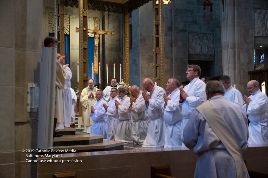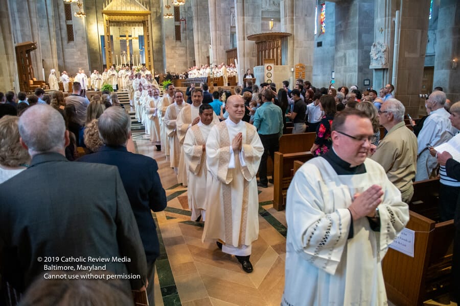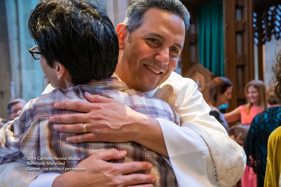 Vicente Pérez durmió, lactó y jugó con su madre, Louren, en la capilla del Santísimo Sacramento el 25 de mayo, sin darse cuenta de los acontecimientos en el santuario principal, donde el arzobispo William E. Lori ordenó a 14 hombres al diaconado permanente para servir en la Arquidiócesis de Baltimore.