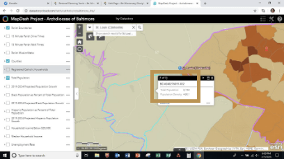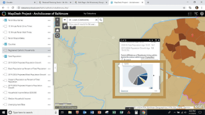 The Archdiocese of Baltimore Office of Pastoral Planning has access to additional data that is not publically available. This includes data related to parishioner households, household characteristics and market data, etc. If you are looking for this type of information, please contact the Office of Pastoral Planning for assistance.