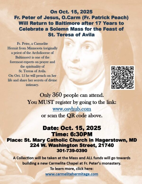 St. Ursula Church 8801 Harford Road, Parkville, MDJoin us for an Advent Day of Healing, Mercy, and Hope, featuring a full day of Adoration following the 8:30 AM Mass, the Sacrament of Reconciliation from 9–11 AM and 4–6 PM, and a special Holy Mass of Atonement and Healing from 6:30–8 PM. This Mass offers a prayerful space to bring Christ your burdens […]