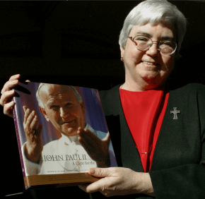 She was the reporter who busted then-TV show host Phil Donahue for using made-up names when talking about the sisters who taught him, and the one whose first foray on the “spokesnun” side of news led to stories about her very public battles with a Colorado sheriff over logistics at World Youth Day in Denver.