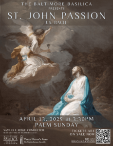 Baltimore, MD – The Basilica of the Assumption is hosting a profound musical journey this Palm Sunday, April 13, at 3:30PM with a stirring performance of J.S. Bach’s St. John Passion. Set in America’s First Cathedral, this deeply moving work brings Bach’s expressive arias, chorales, and choruses to life, recounting the story of Christ’s Passion.