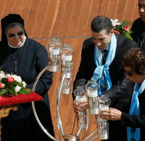 Speaking about St. Mary of Jesus Crucified, the pope said, “Her docility to the Holy Spirit made her a means of encounter and fellowship with the Muslim world. So, too, Sister Marie-Alphonsine Danil Ghattas came to understand clearly what it means to radiate the love of God in the apostolate, and to be a witness to meekness and unity. She shows us the importance of becoming responsible for one another, of living lives of service one to another.”
