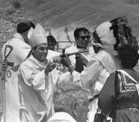 Bishop Pelotte was named coadjutor of Gallup in 1986 at the age of 40. His outdoor ordination ceremony at Red Rock State Park Arena was a joyous cultural celebration that included dancers and singers in native dress from American Indian tribes across the Southwest as well as representatives of his own Abenaki tribe from Maine.