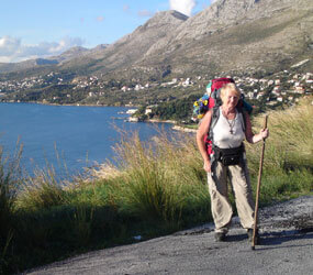 Though originally she had planned to make the entire trek from Italy through Albania, Croatia, Greece, Turkey, Syria and Jordan on foot, the political realities of the region forced her to reconsider, and she stopped her foot pilgrimage at Ephesus, Turkey. She traveled by plane and bus to Israel.