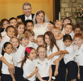 Monsignor Joe Corbett, pastor, celebrated the Mass, which was attended by the entire student body, as well as the couple’s friends and family members.