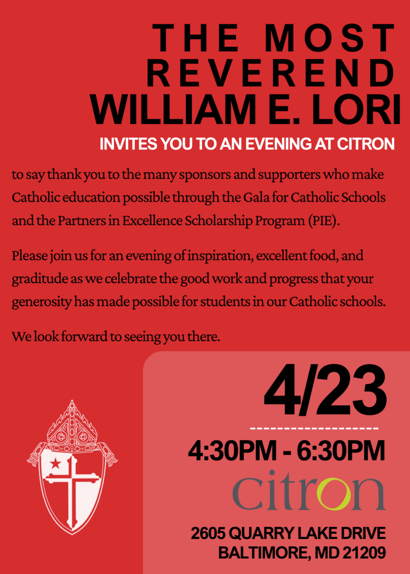 This event presents a chance for Archbishop Lori to say thank you to the many sponsors and supporters who make Catholic education possible through the Shine the Light Gala for Catholic Schools and the Partners in Excellence (PIE) Scholarship Program.