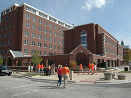 It includes a new residence hall that houses almost 600 students, doubling its previous capacity; the original dorm had a waiting list of nearly 200 students. Right now the new seven-story dorm is the only Catholic residence hall at a non-Catholic college.