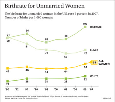 WASHINGTON – A recent federal report showing a rise in U.S. births in 2007 also revealed another statistic: 40 percent of the births were to unwed mothers.