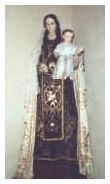 In the 17th Century, three peasants – a black slave and two indigenous people-had gone to the Bay of Nipe in cuba, in search of salt. There was a terrible storm and, after two days of anguish, there was a calm morning in the dawn. The three men saw an image floating on the water. Her clothes were dry and she carried the Infant Jesus in her arms. Under her feet was a piece of wood with the inscription: I am Our Lady of Charity.