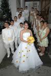 Secondly, no matter how simple you would like to keep the ceremony, it will likely end up in a lavish display–the poorer the family, the more costly the gowns! Remember though that a good deal of the cost of the ceremony will be shared by the various padrinos, e.g. the padrinos of the gown and the padrinos of the limousine. There are two principal groups involved in the ceremony. First the damas and chambelanes. They will consist of the quinceañera’s sisters, cousins and friends. There may be as many as fifteen couples and they come first in the traditional entrance preocession. Let the damas take the first pew on your right and the chambelanes the first on the left. The second group are de padrinos. In general they represent the parents’ generation. They enter next, taking the second pew on the left and right. The most important godparents are the padrinos de velacion and they come in at the end of all the other padrinos. Their place in the sanctuary is a little behind and to the right and left of the quinceañera. In the entrace rite she comes in accompanied by her parents and perhaps a flower girl or two. There should be a kneeler centered in front of the altar for the quinceañera. Her parents stay behind the padrinos de velacion.