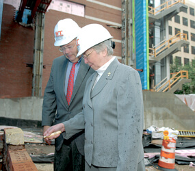 In a Sept. 11 ceremony, the two Mercy officials used the trowel in placing a brick at the construction site of the new Mary Catherine Bunting Center. The brick was taken from the original House of Mercy built in 1827 on Baggot Street in Dublin, Ireland
